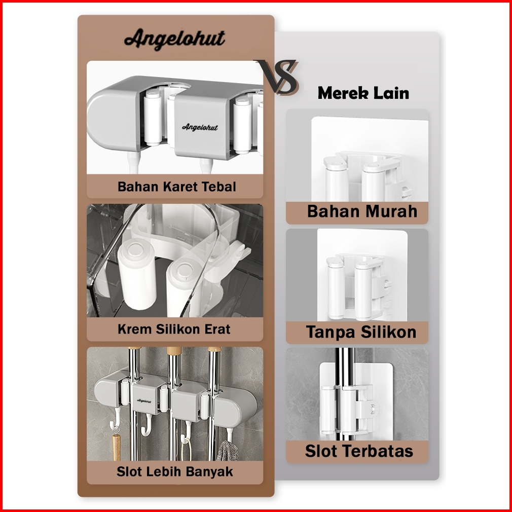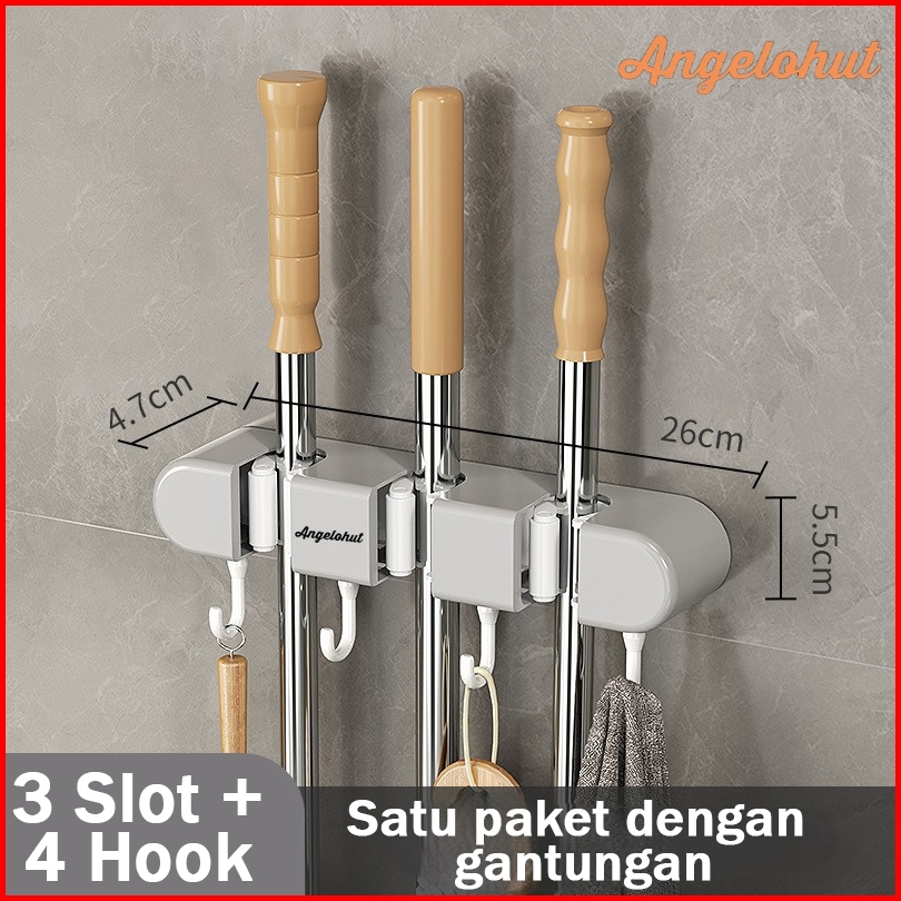 Angelohut Y008 Holder Tempat Gantung Sapu Dan Pel Tempel Ke Dinding 4 Hook