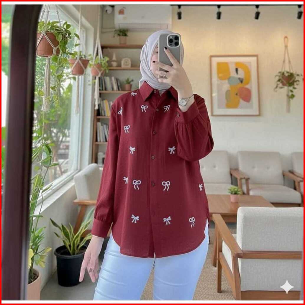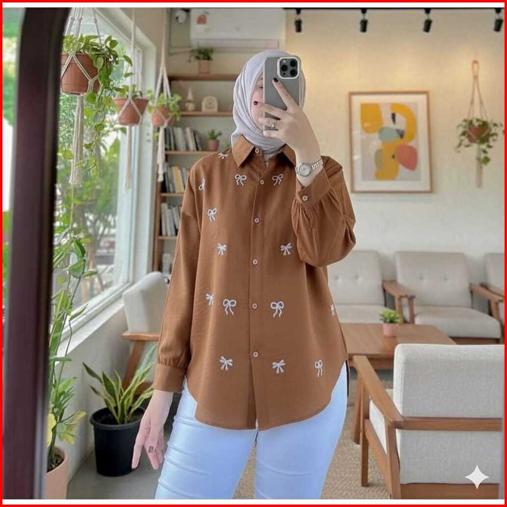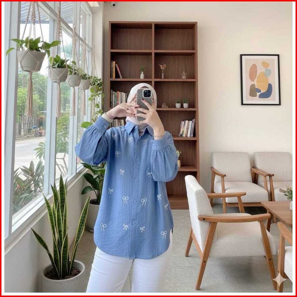 Baju Atasan Wanita Terbaru Bordir Pita Kecil Kemeja Wanita Bahan Adem Jumbo