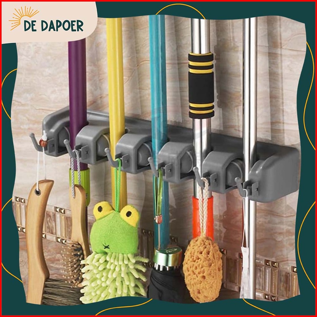 Gantungan Tempel Sapu Pel Lantai Dinding Rak Kunci Motor Mobil Magic Mop Holder 5 3 Slot