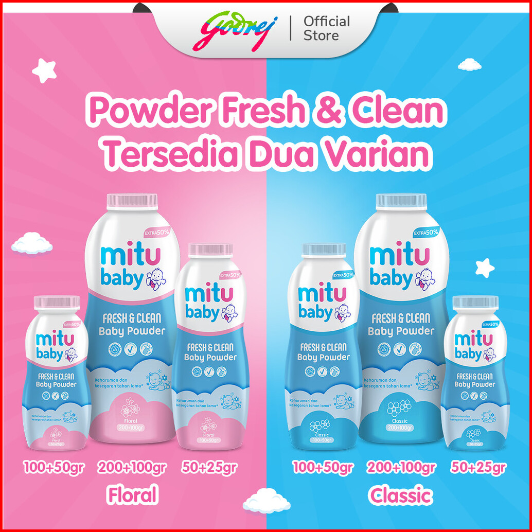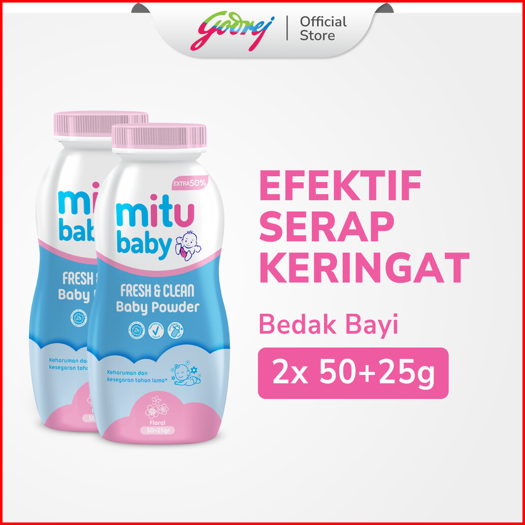 Mitu Baby Powder Fresh Clean Pink Floral 50 Gr 50 X 2 - Bedak Bayi