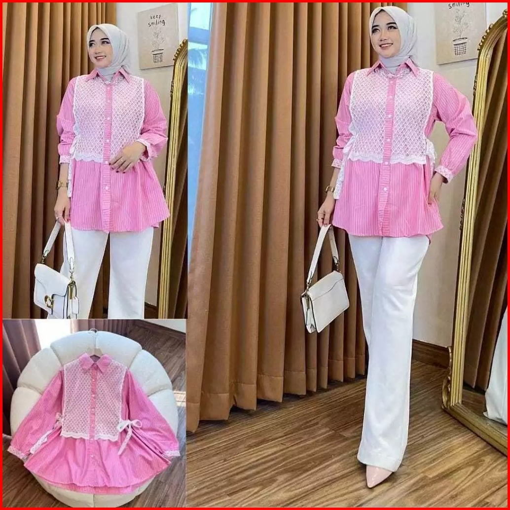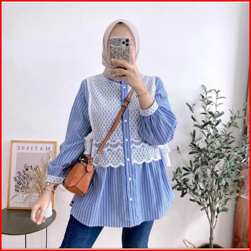 Terlaris Baju Atasan Kemeja Wanita Terbaru Baju Atasan Kemeja Salur Mix Brukat Mewah