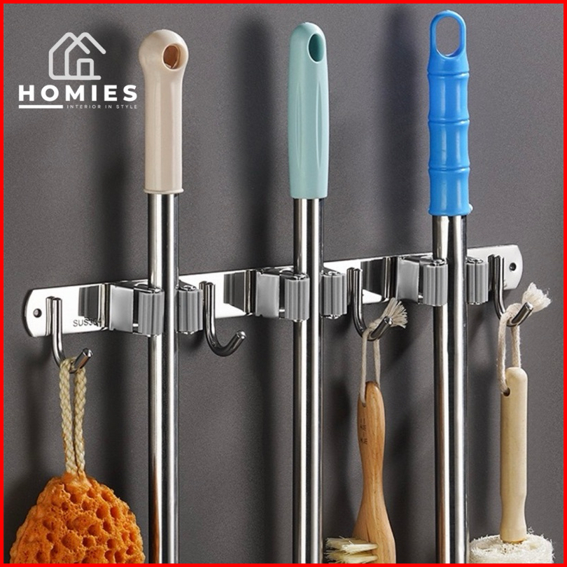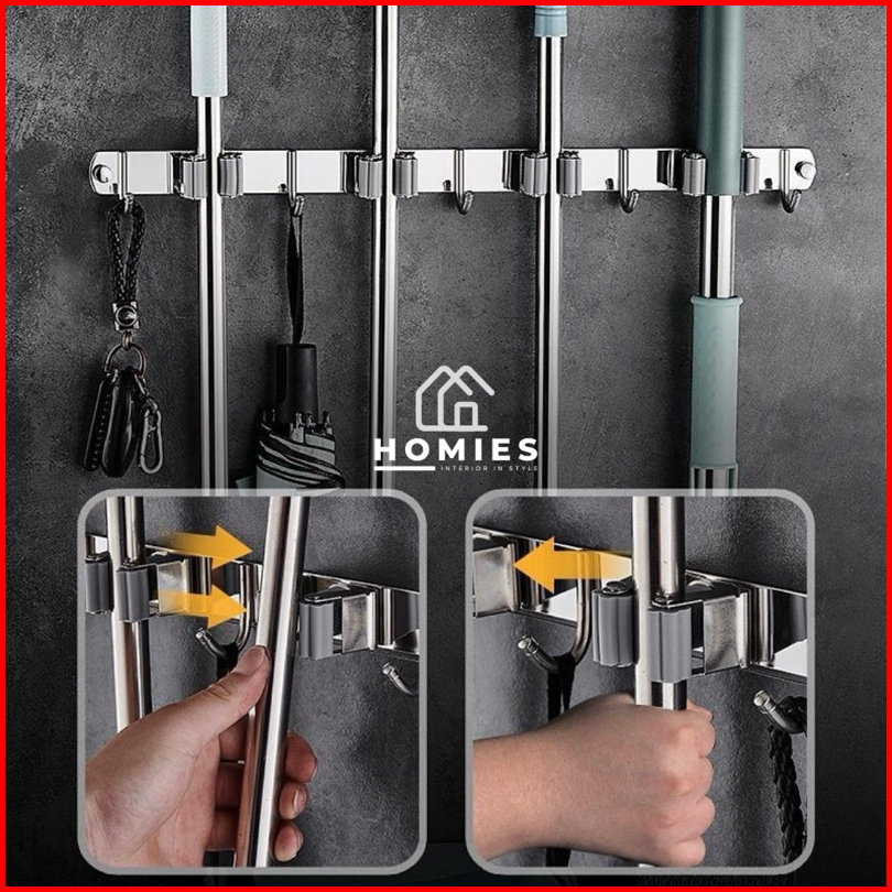 Gantungan Sapu Pel Stainless Mop Broom Holder Cantolan Premium Gantungan Sapu Pel Dinding Dengan Hook