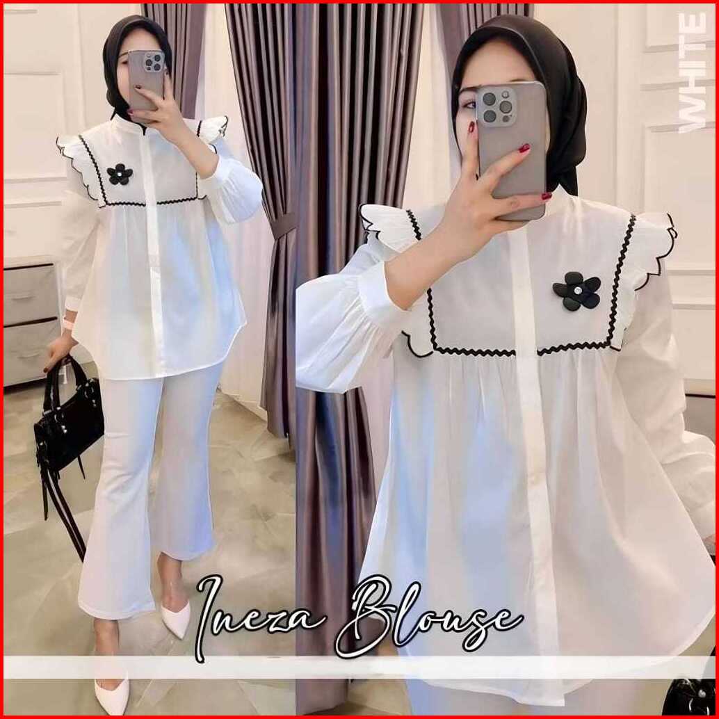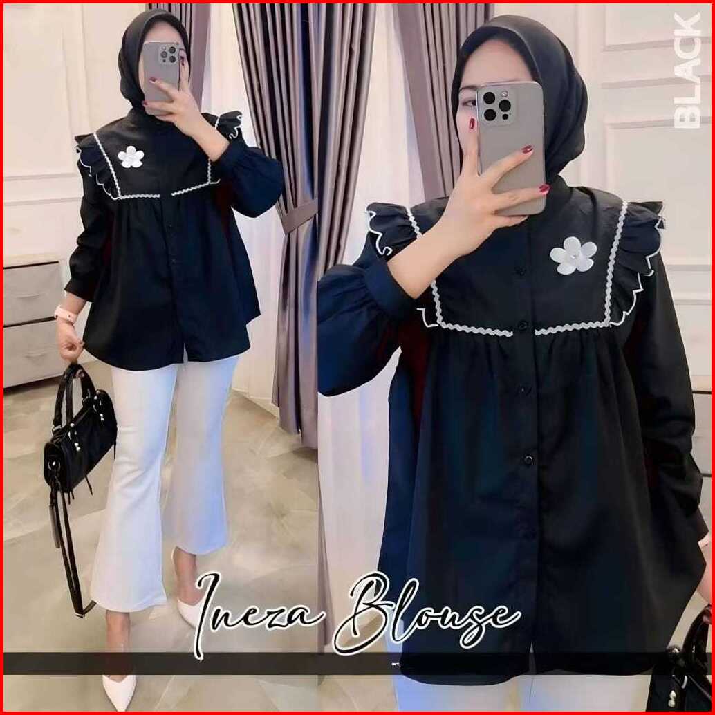 Atasan Wanita Ineza Blouse Katun Lengan Panjang