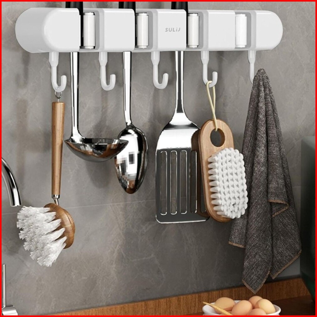 Sapu Pel Klip Kait Bebas Pukulan Rak Pel Yang Dipasang Di Dinding Gantungan Dinding Serbaguna Terbaru 6 Kait Tang Gantun