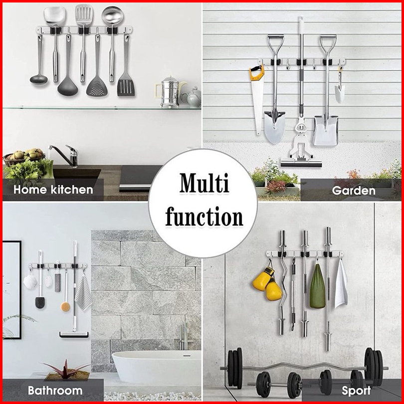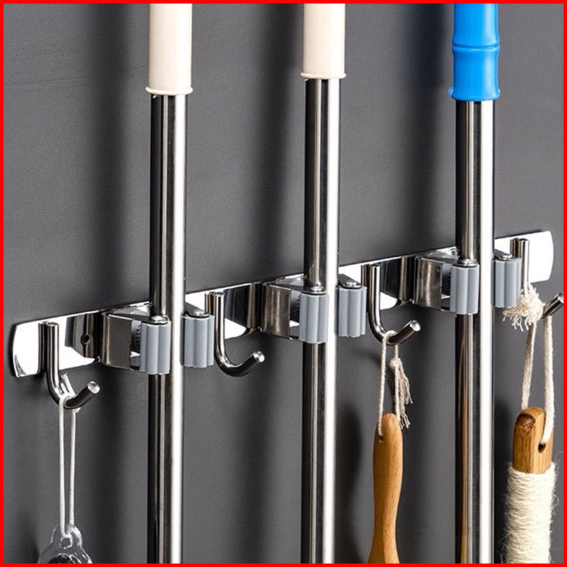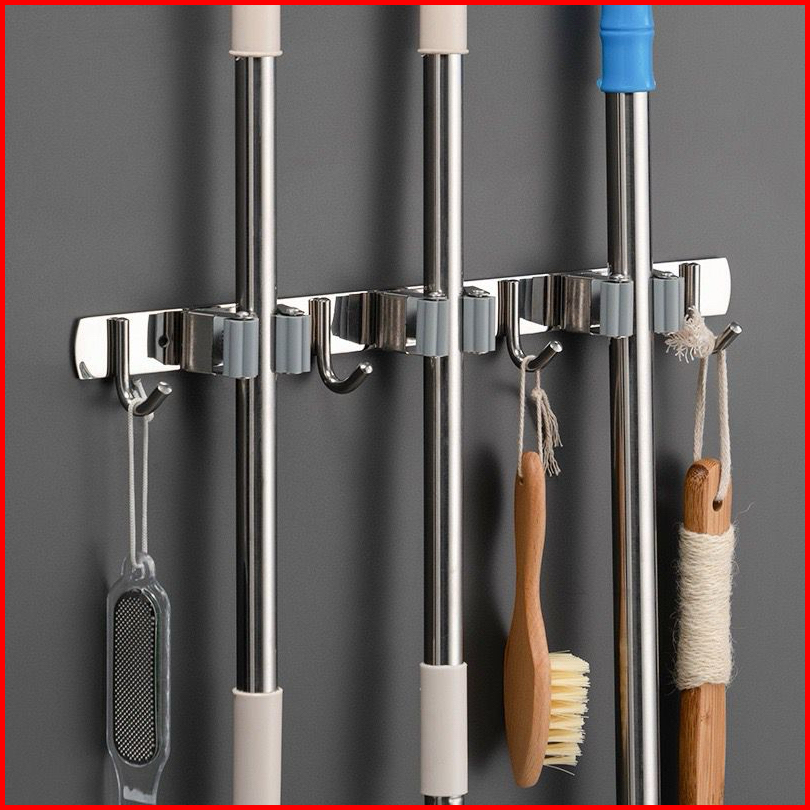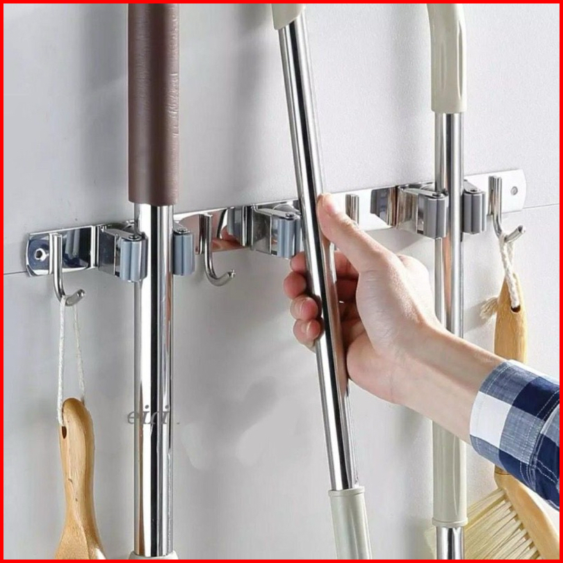 Hook Tempel Gantungan Sapu Pel Lantai Stainless Dengan Hook 3klip 4kait