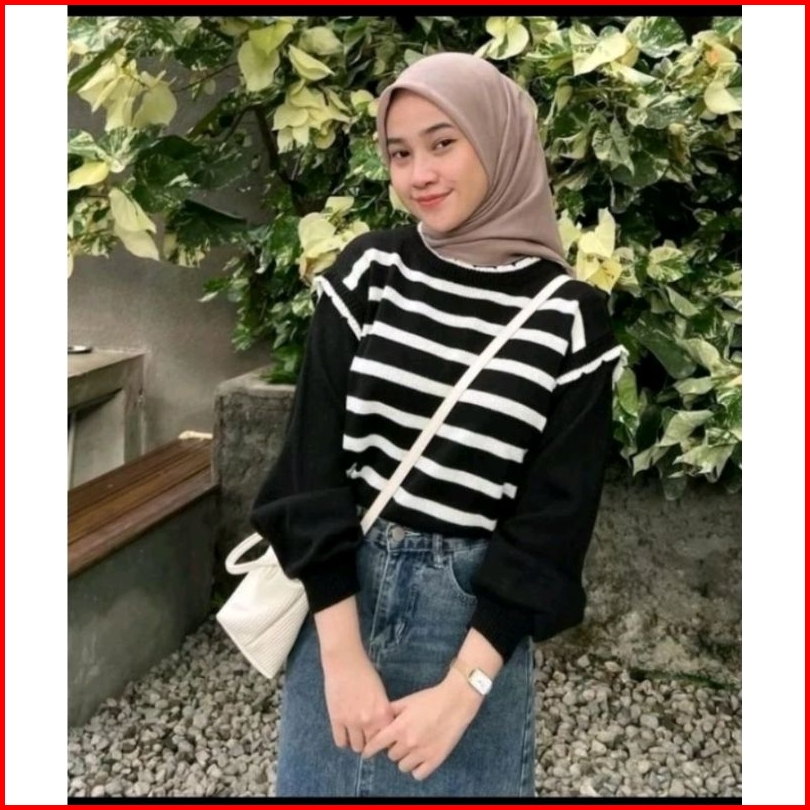 Atasan Knit Wanita Lengan Panjang Lengan Balon