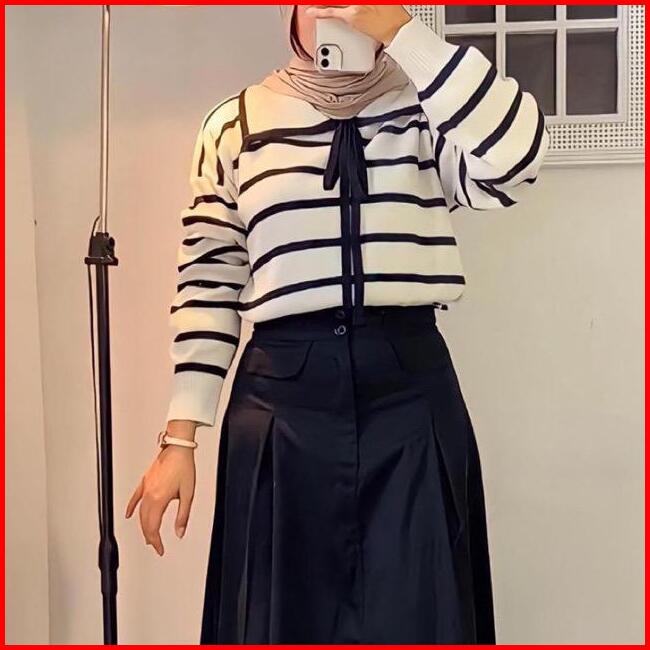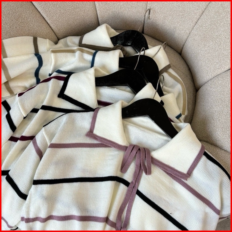 Nilla Blouse Knited Atasan Rajut Wanita Motif Setrip Garis Kerah Lucu Rajut Gemas Adem Ntr Atasan Blouse Wanita Berkerah