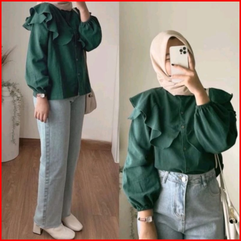 Blouse Ruffle Rafella Atasan Wanita Korean Style Outfit Wanita