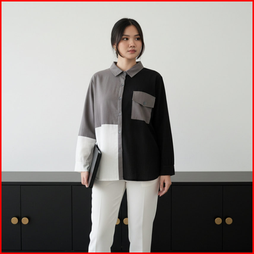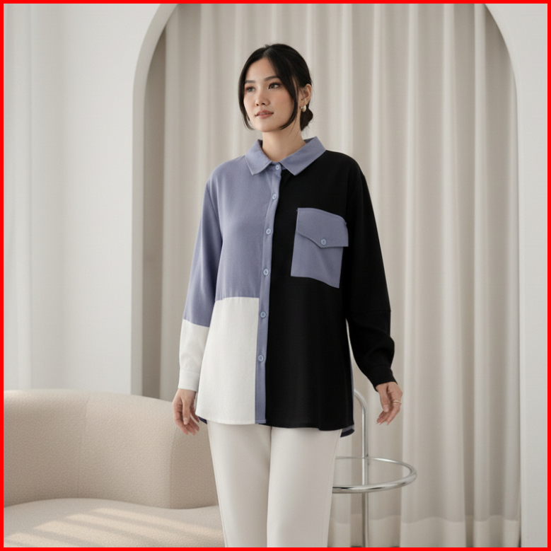Dierra Shirt Kemeja Formal Basic Linen Rami Full Kancing Kemeja Wanita Korea Kemeja Wanita Lengan Panjang Atasan Wanita