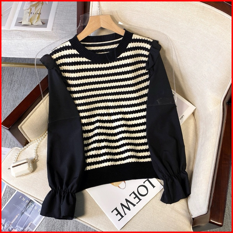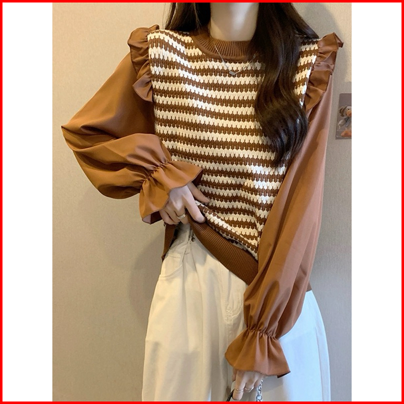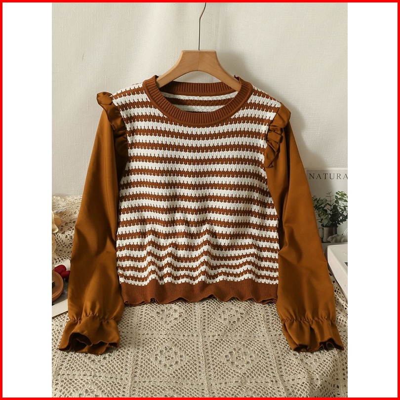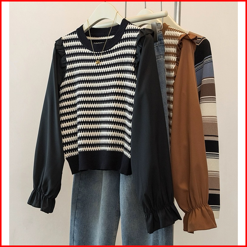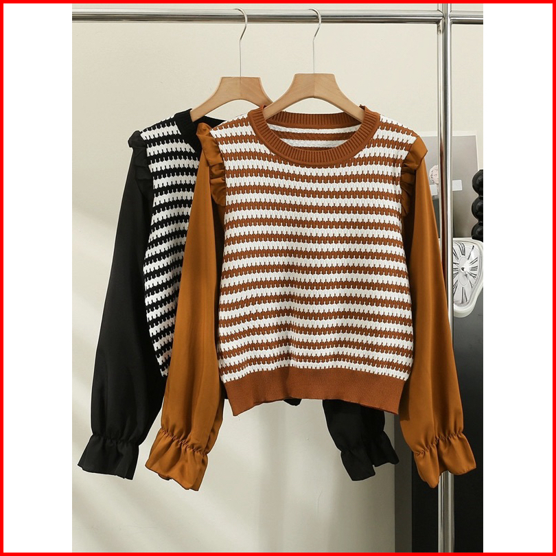 Tshirtgiants.id Atasan Rajut Garis Lengan Puffy 12374 Blouse Rajut Stripe