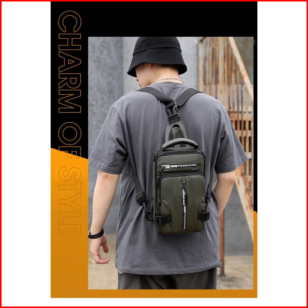 Valshion Tas Selempang Pria Usb Charge Multifungsi Slingbag Sport Professional Waterproof Bisa Dijadikan Ransel Dan Sele