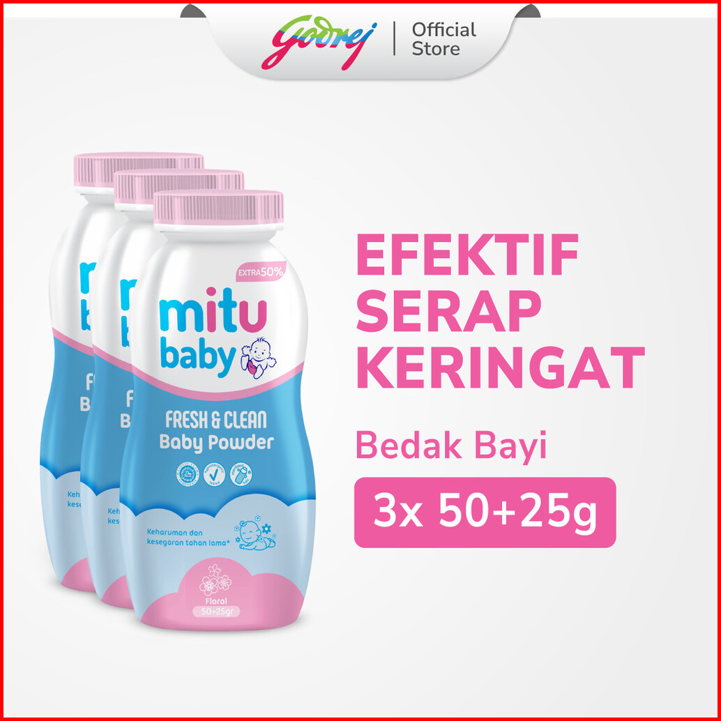 Mitu Baby Powder Fresh Clean Pink Floral 50 Gr 50 X 3 - Bedak Bayi