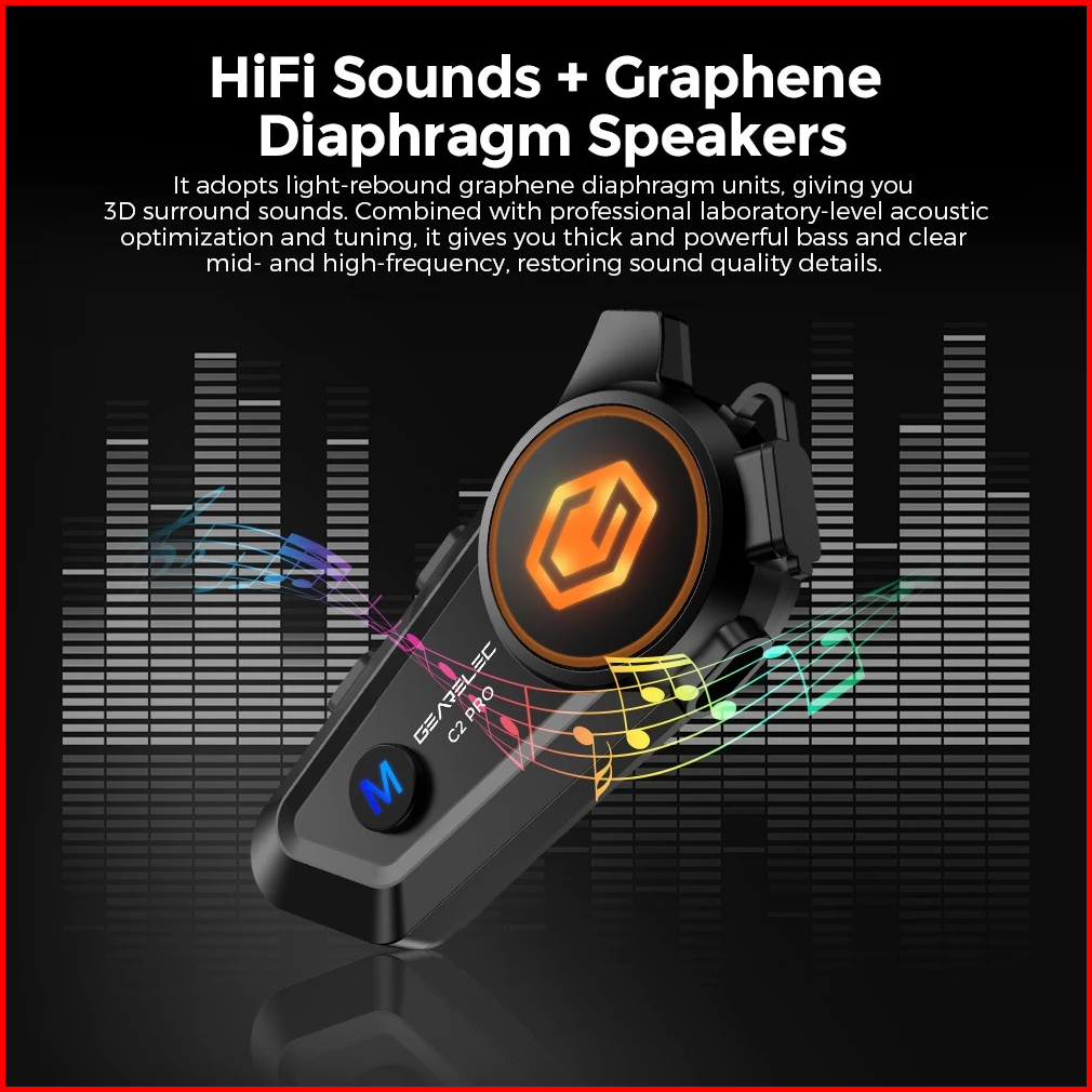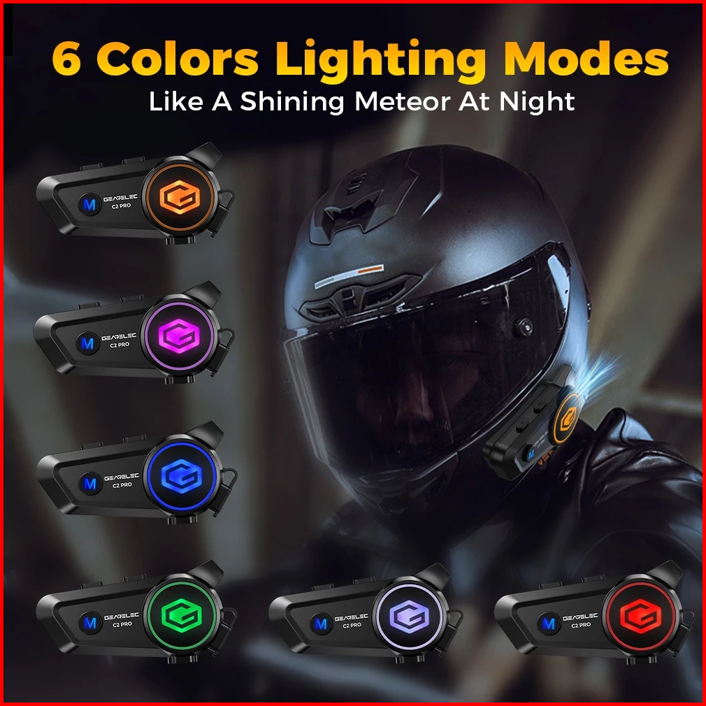 Gearelec C2 Pro Motorcycle Helmet Intercom Headset 2 Riders 50m Intercom Support Music Sharing While In Intercom