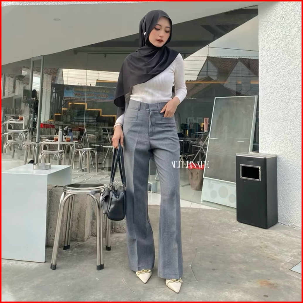 Cutbray Highwaist Pants - Celana Cutbray Pinggang Highwaist Bahan Melar Semiwoll Wanita Premium