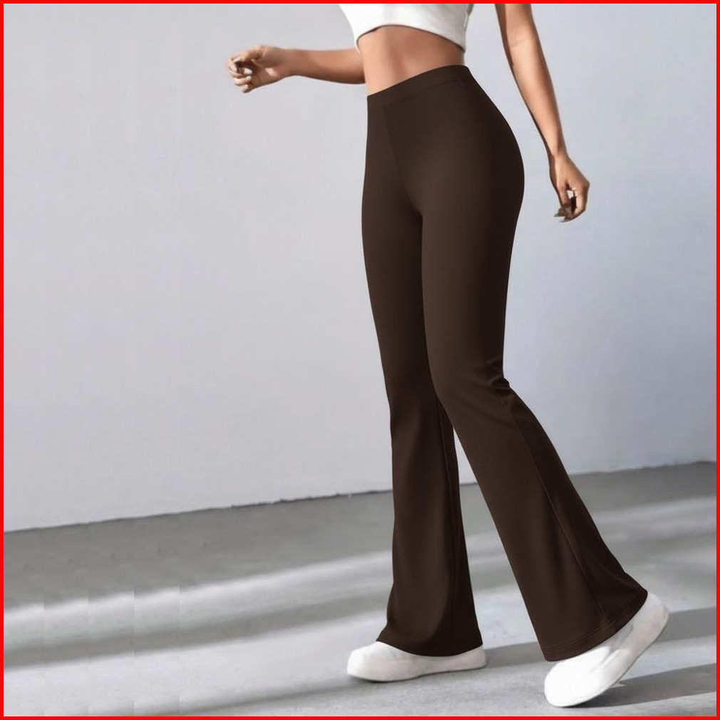 Ptm - Premium Celana Panjang Cutbray Pinggang Highwaist Flare Pants Bahan Stretch Jumbo Kantor Olahraga Gym Pilates Runn