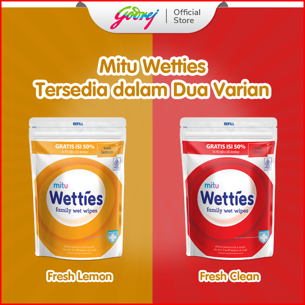 Mitu Wetties Antiseptic Family Wet Wipes Fresh Lemon Refill 90 S X2 - Tisu Basah Keluarga