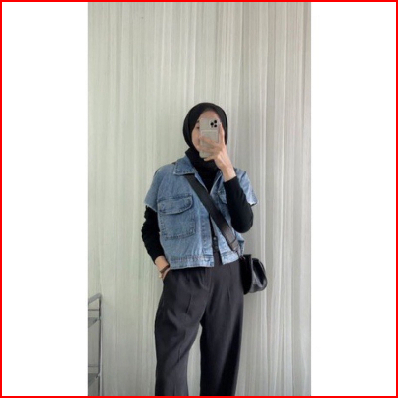 Ryu - Jaket Rompi Jeans Oversize Vest Jaket Denim Outer Blazer Cardi Jaket Wanita Jaket Kekinian Vest Jeans
