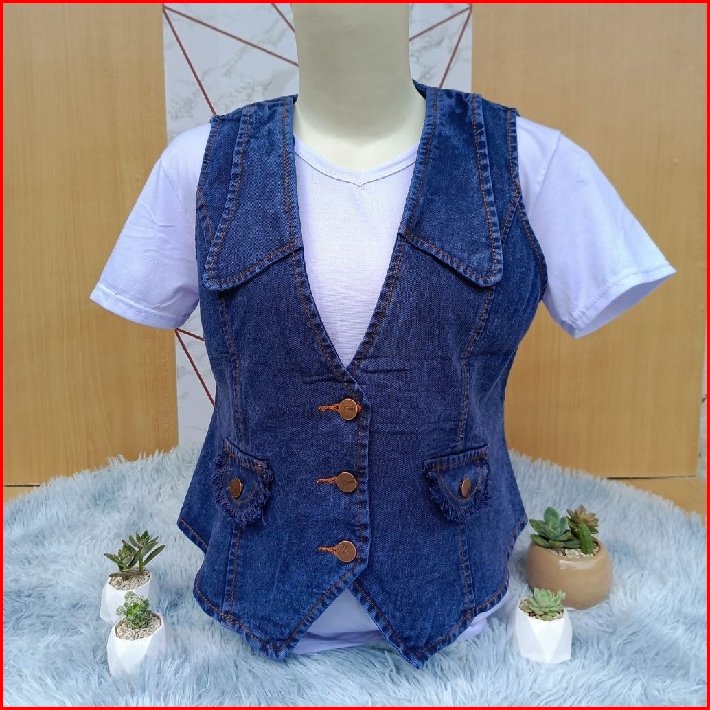 Baju Atasan Rompi Jeans Wanita Korean Style Terbaru Vest Outer Denim Berkualitas Nyaman Dipakai Outfit Hangout Wanita