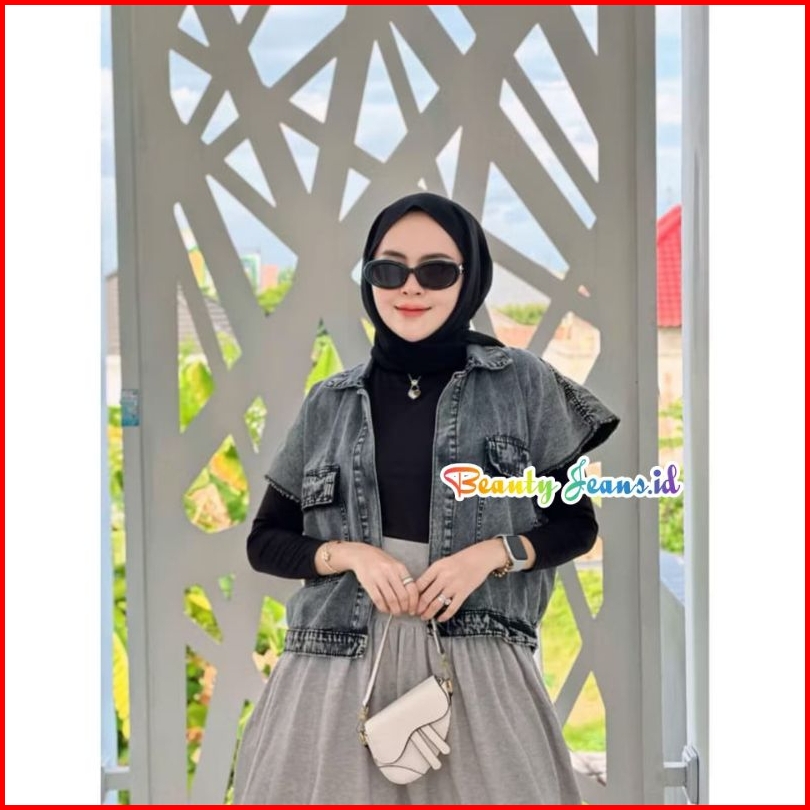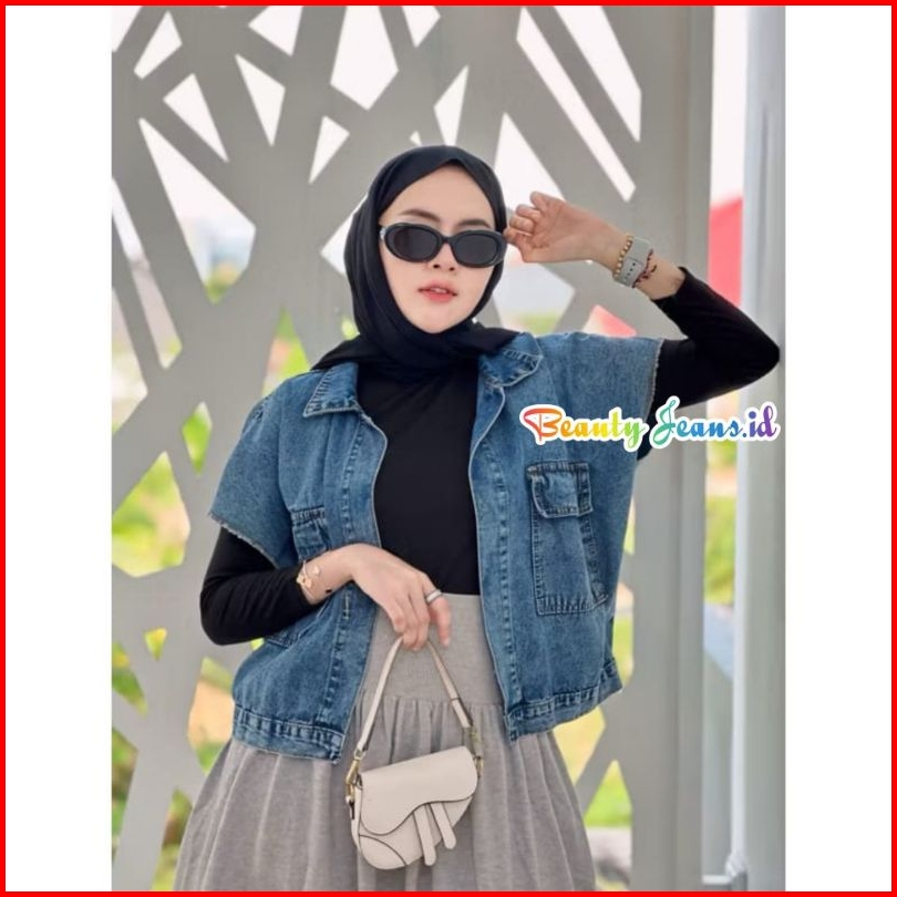 Oversize Cassandra Jacket Rompi Denim Jeans Wanita Jaket Jins Rompi Oversize Kekinian Jaket Tanpa Lengan Rompi Korean St