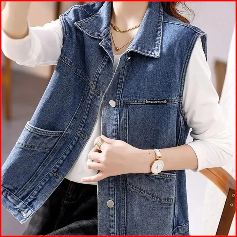 Ready Stock Dan Vest Rompi Jeans Korea Import Dark Snow Wanita Cewek Big Size Outer Fashion Wanita Cewek