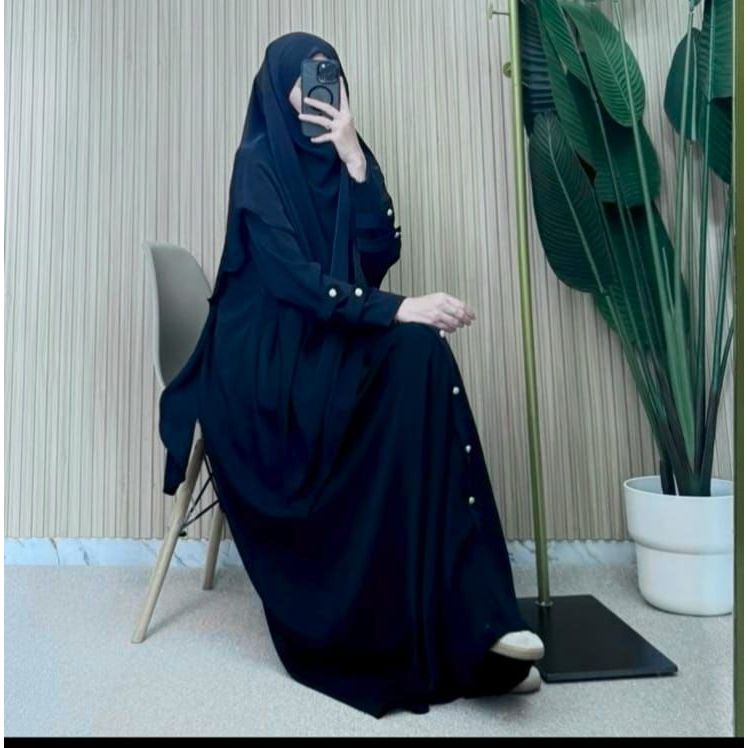 Gamis Syar'i Muslimah Umroh Haji Abaya Arumi Set Khimar Terlaris dishope mewah elegan