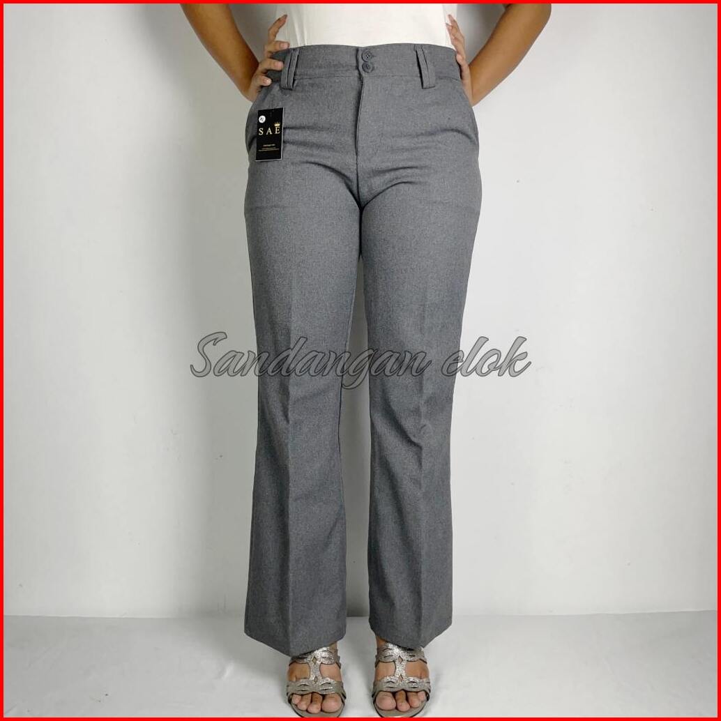 Celana Kerja Wanita Cutbray Jumbo Bahan Semiwoll Anti Kusut Nyaman Tebal Adem Saat Di Pakai