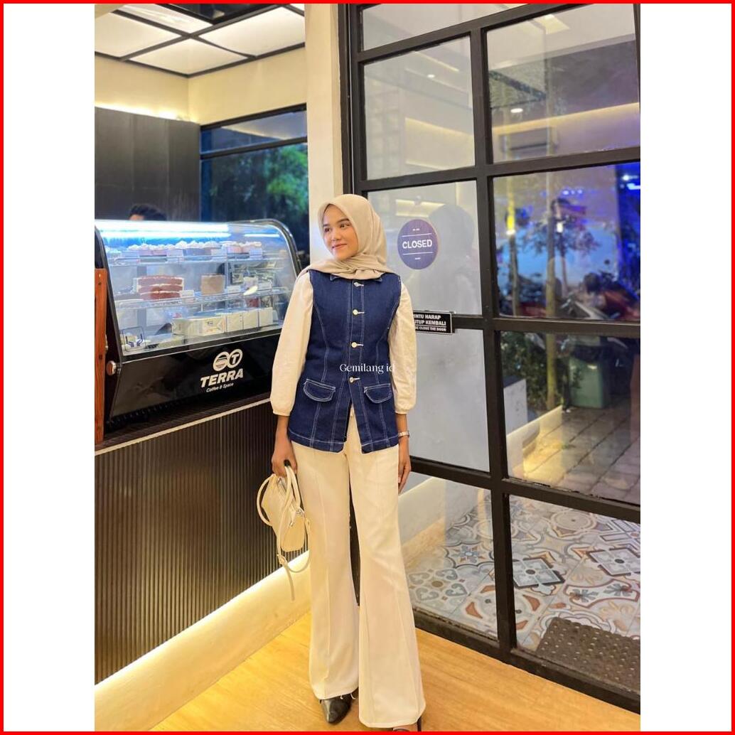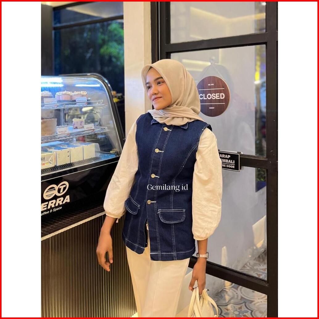 Gemilang Id Vest Denim Rompi Jeans Outer Wanita Kekinian Bahan Jeans Tebal Premium