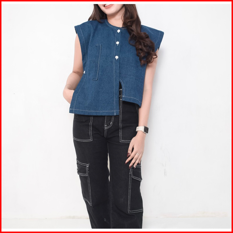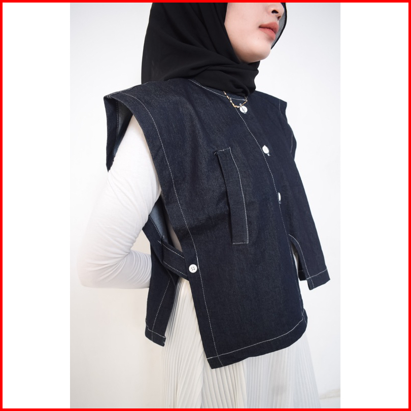 Zoyya Vest Cropped Denim Rompi Outer Kutung Wanita Vest Croptop Rompi Denim