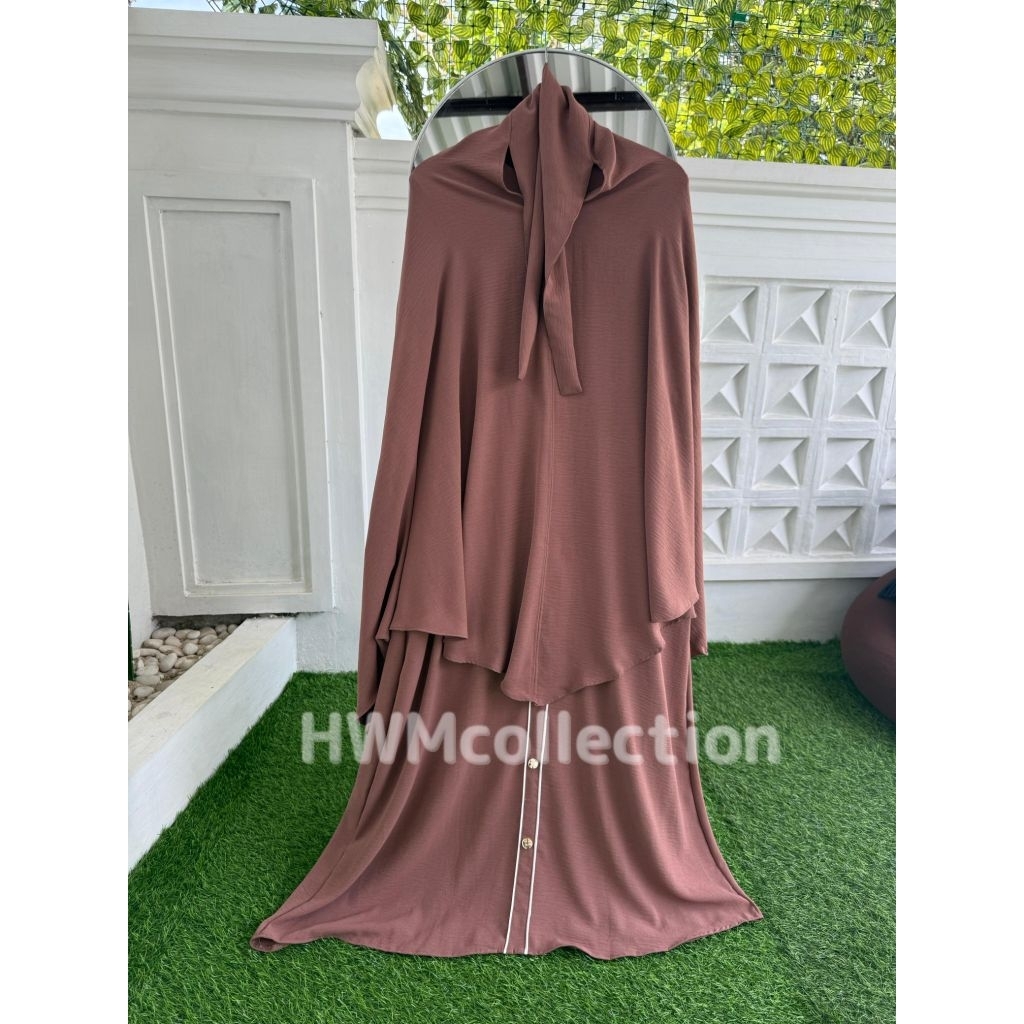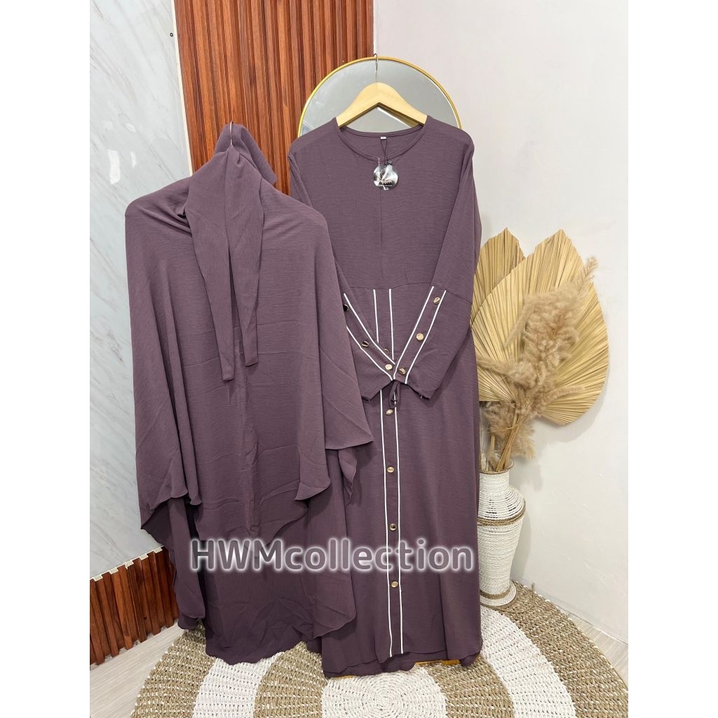 HWM - Naila Gamis Syar'i Set Hijab Bandana Free Cadar Tali Dress Basic Umroh Haji Wanita