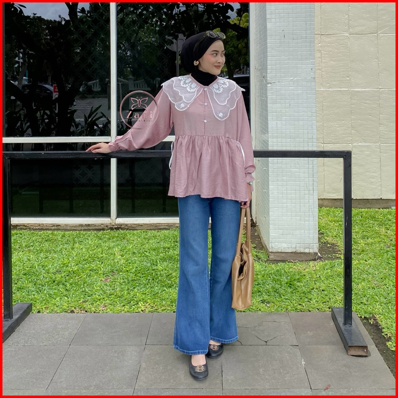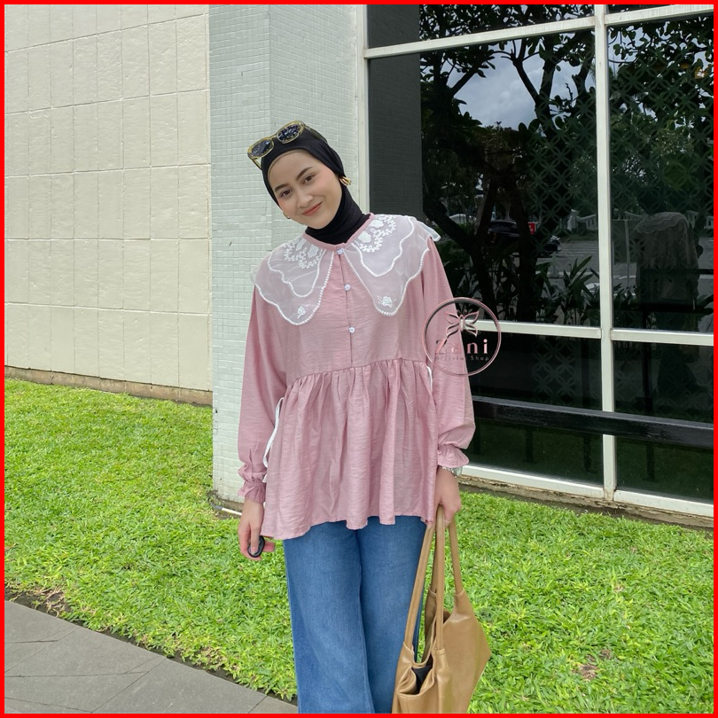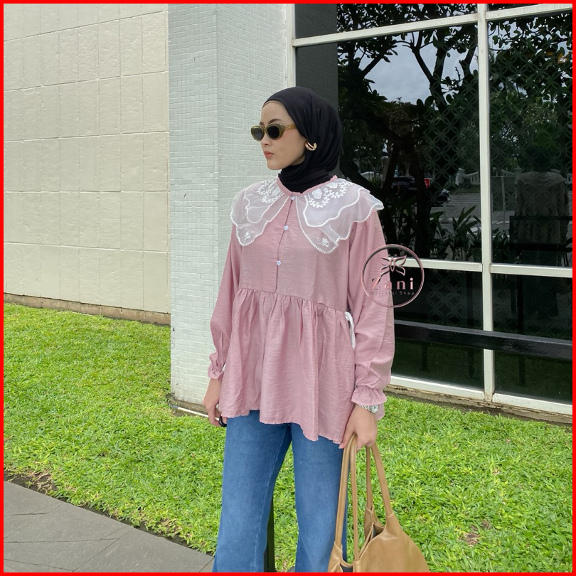 Zani- Collary Blouse Lace - Atasan Wanita Casual Kancing