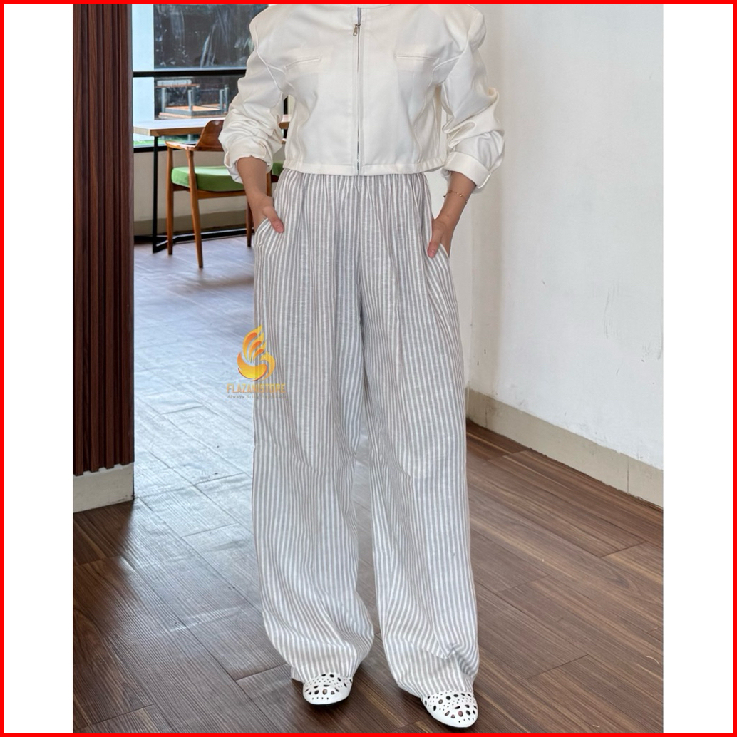 Zani - Linen Stripe Pants Celana Panjang Wanita Loose Pants Kulot Stripe