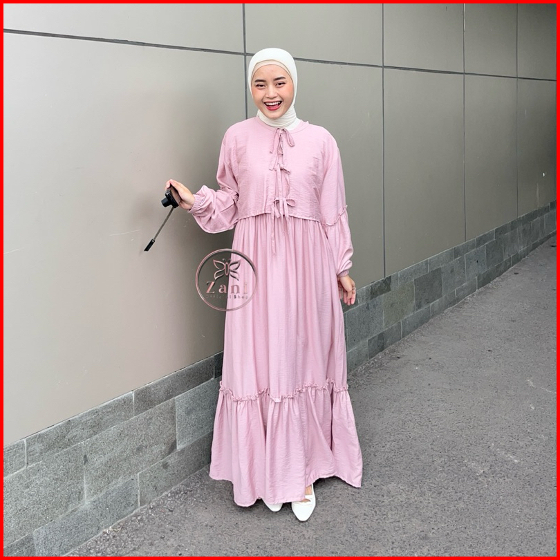 Zani - Haura Dress Set Inner Outer Crop - Dress 2in1 Polos - Gamis Wanita Casual