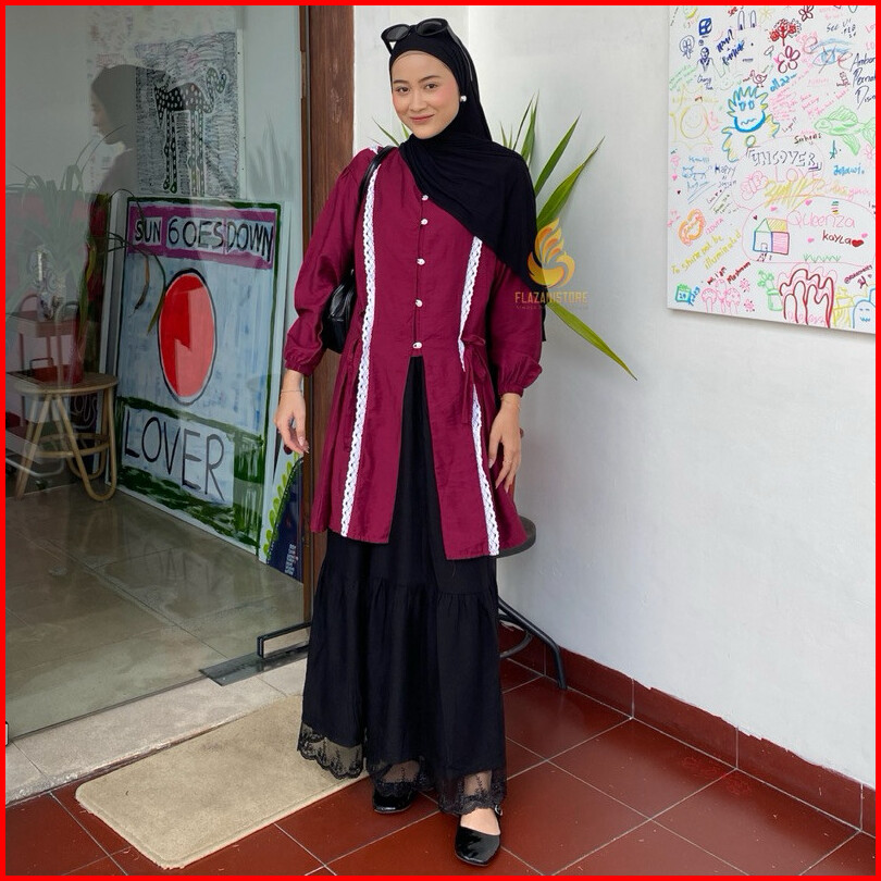 Zani - Karina Tunik Kondangan - Tunik Polos Korean Style - Tunik Aksen Renda Tali