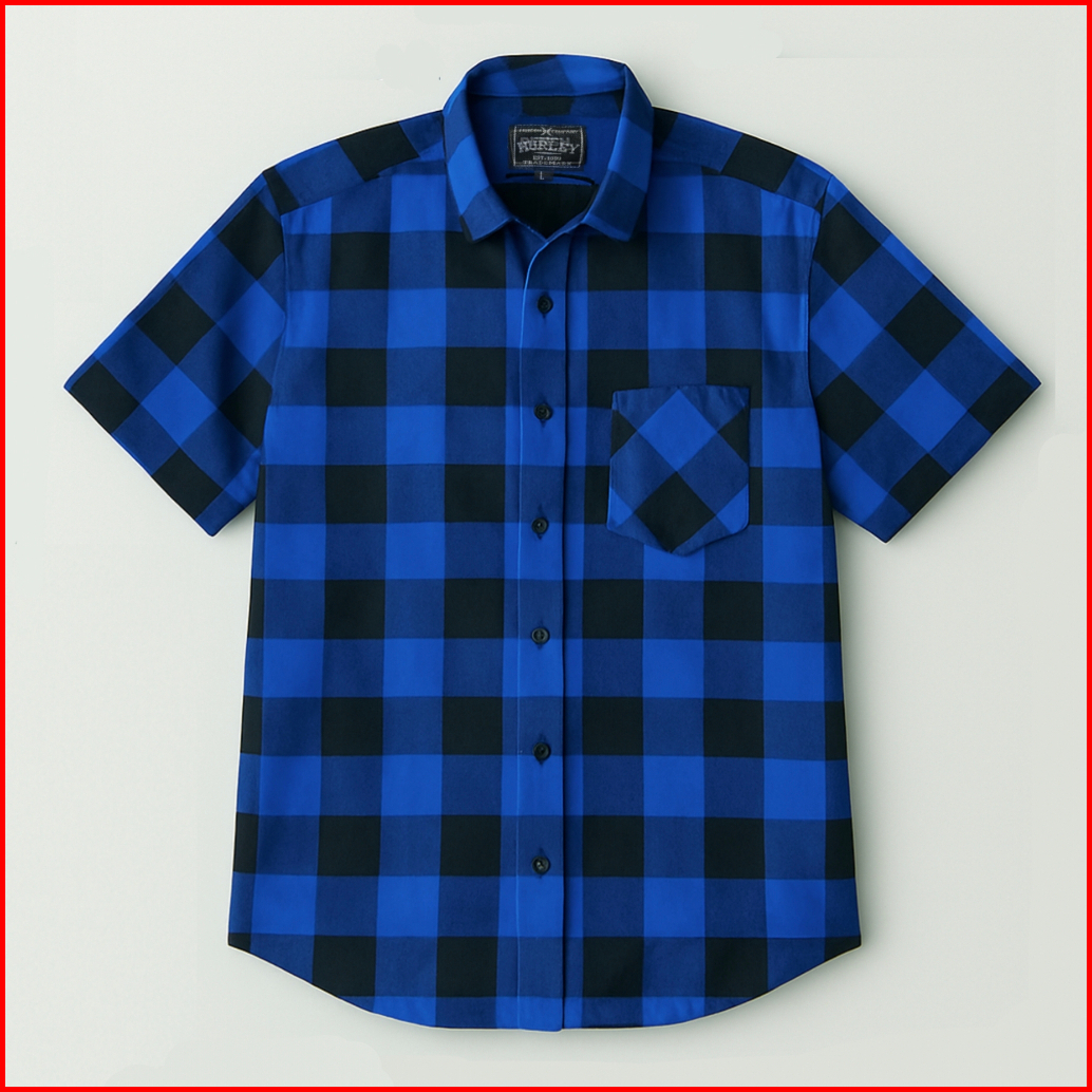 Kemeja Flanel Pria Dewasa Lengan Pendek Premium Motif Kotak Catur Biru