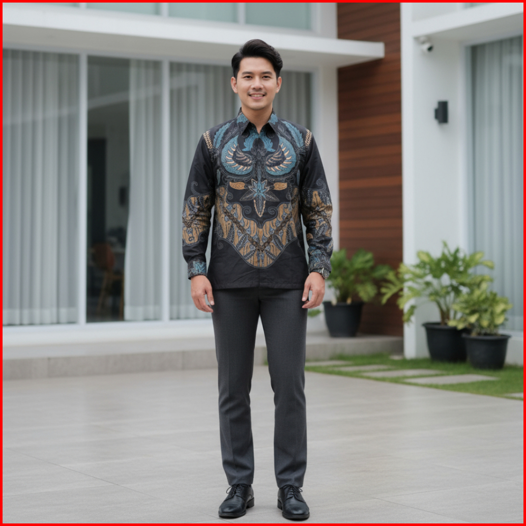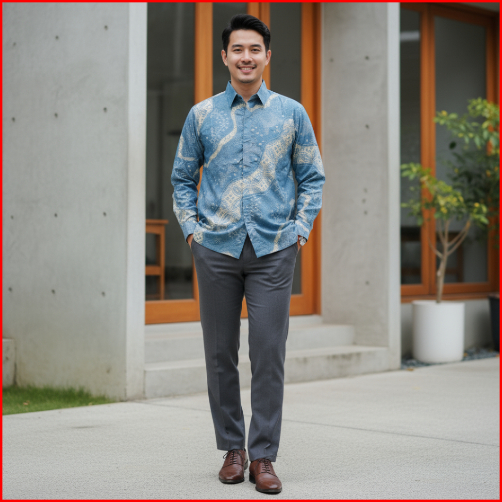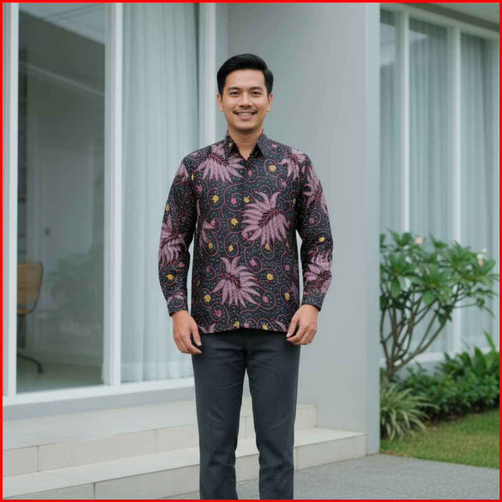 Dinanow Kemeja Batik Pria Lengan Panjang