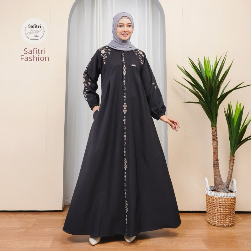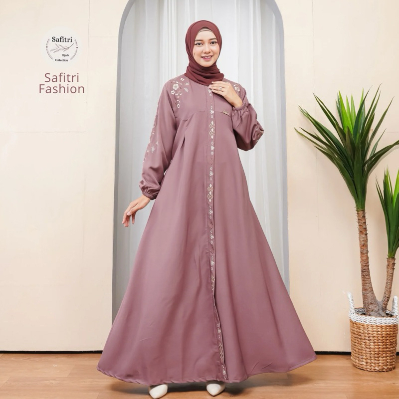 KANAYA DRESS Gamis Umroh Manasik Haji Ihram Lebaran Kondangan Daily Homey kombinasi bordir mewah elegan by Safitri Fashi
