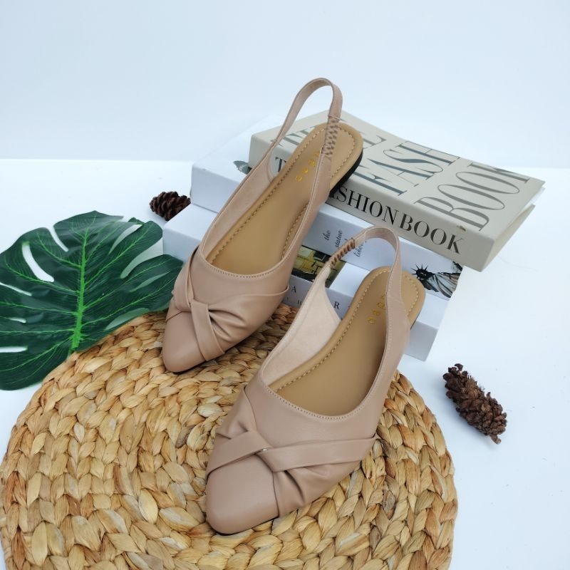 Sandal Flat Wanita Kekinian Tali Belakang FL Kveen | Sepatu Slop Cewek Hak Datar Nyaman Dipakai
