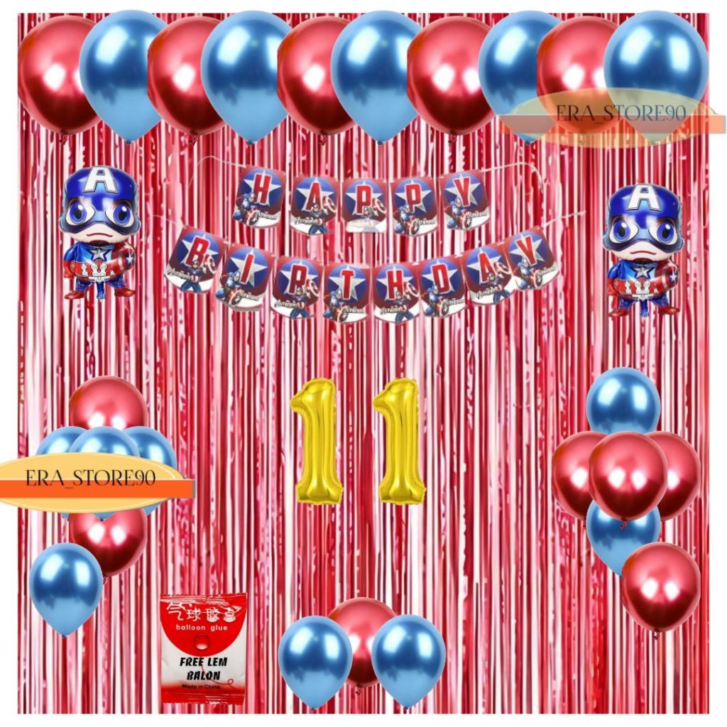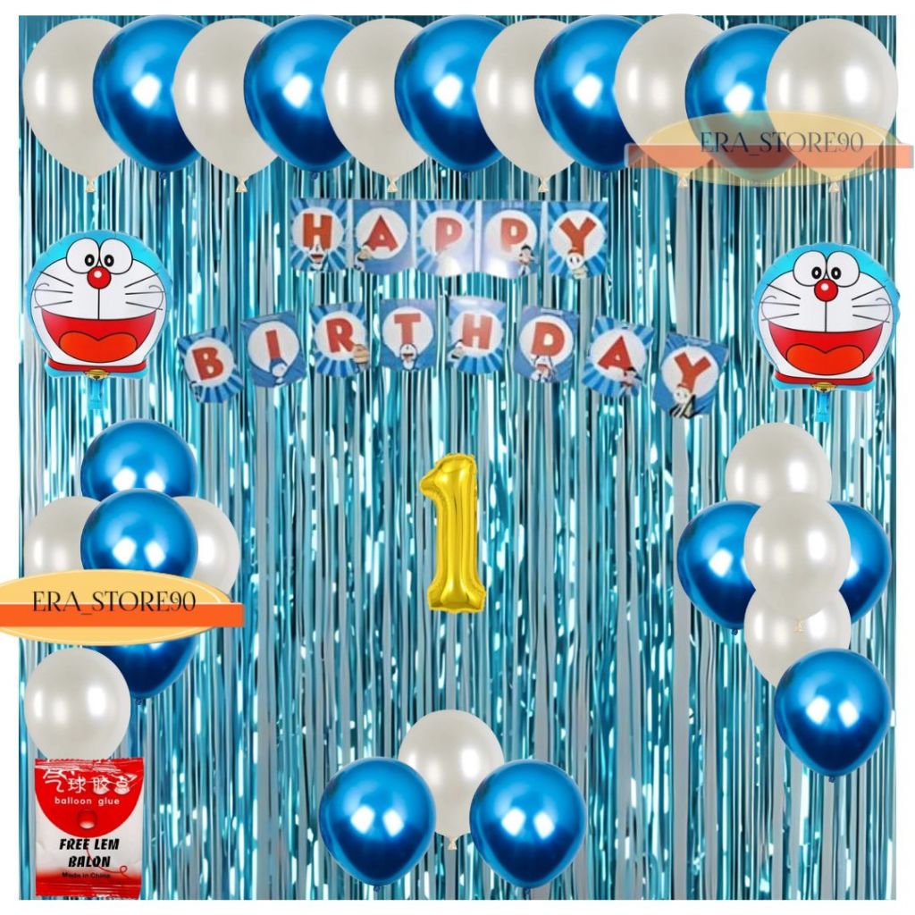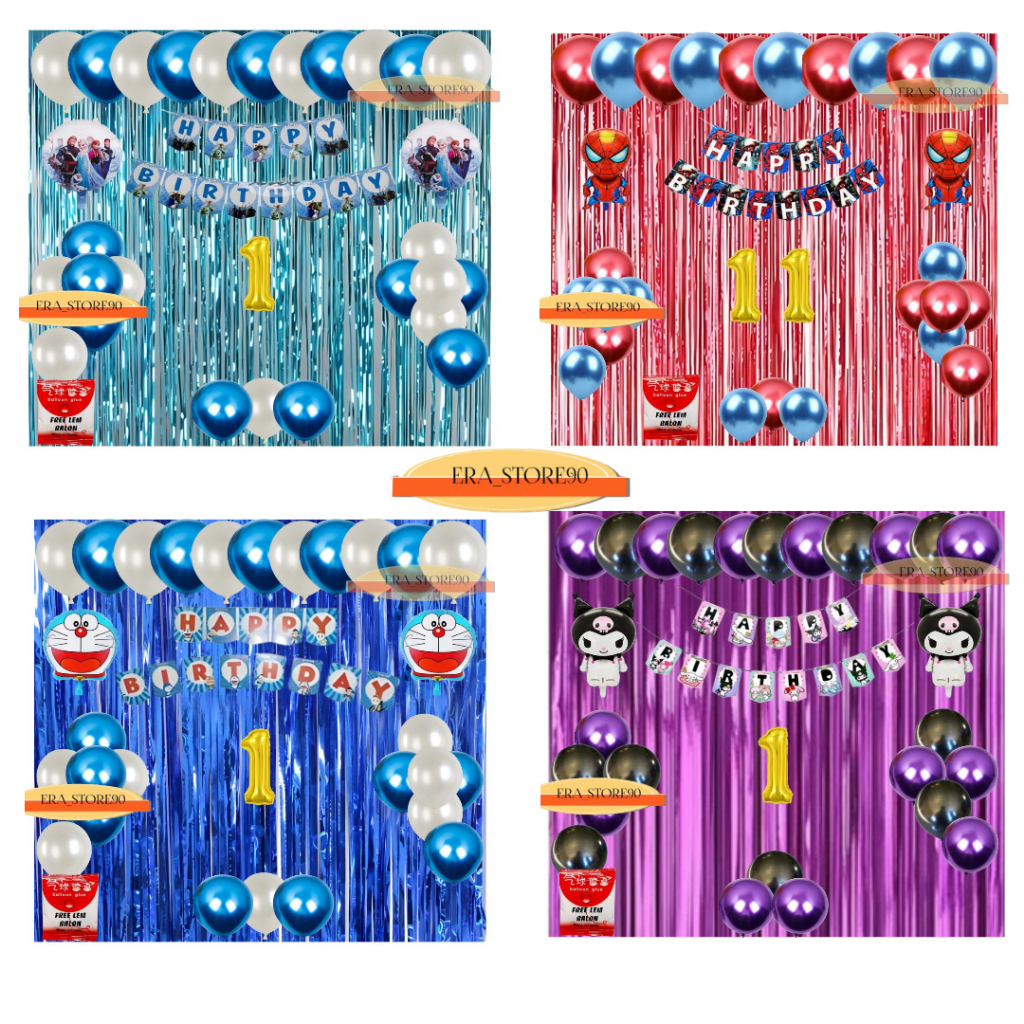 Set Dekorasi Pesta Ulang Tahun Anak Banner Happy Birthday Doraemon Kuromi Spiderman Capten Frozen