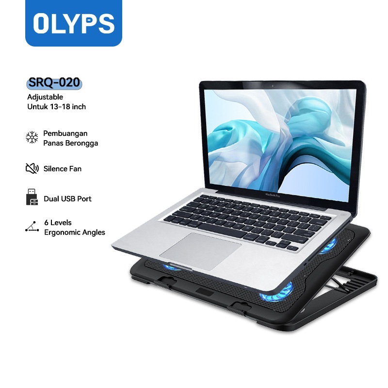 OLYPS Cooling Pad Laptop 5 Turbo Fans Kipas Laptop Cooling Pad Pendingin Laptop - 6 Level Stand
