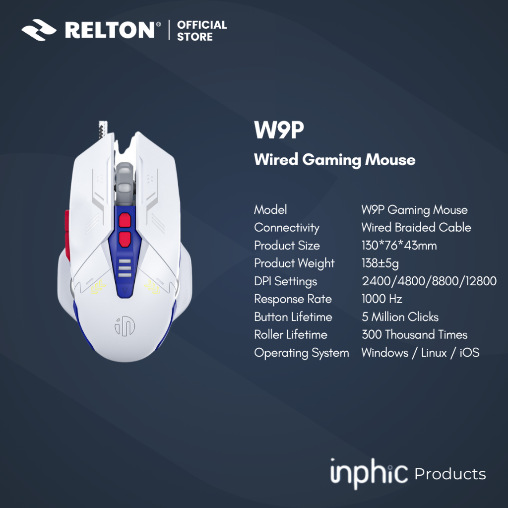 Gaming Mouse W9P Macro Programmable Button 7 Macro Keys RGB Light Kelas Gaming INPHIC