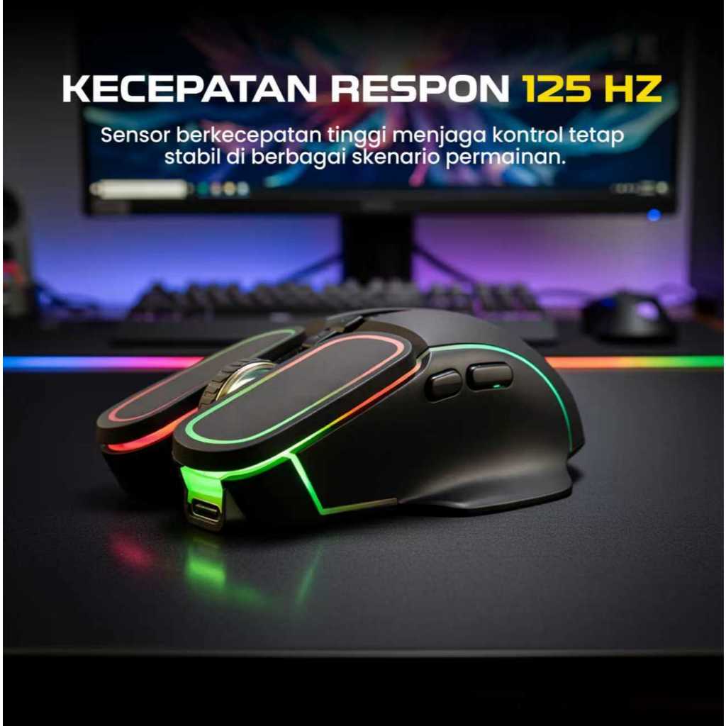 Mouse Wireless Gaming Rechargeable Type-C Fast Charging 1600DPI RGB Light GMW100