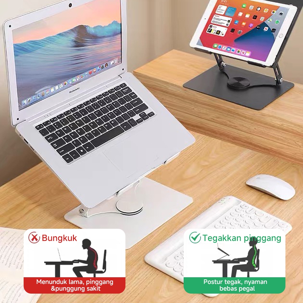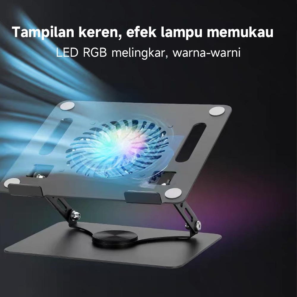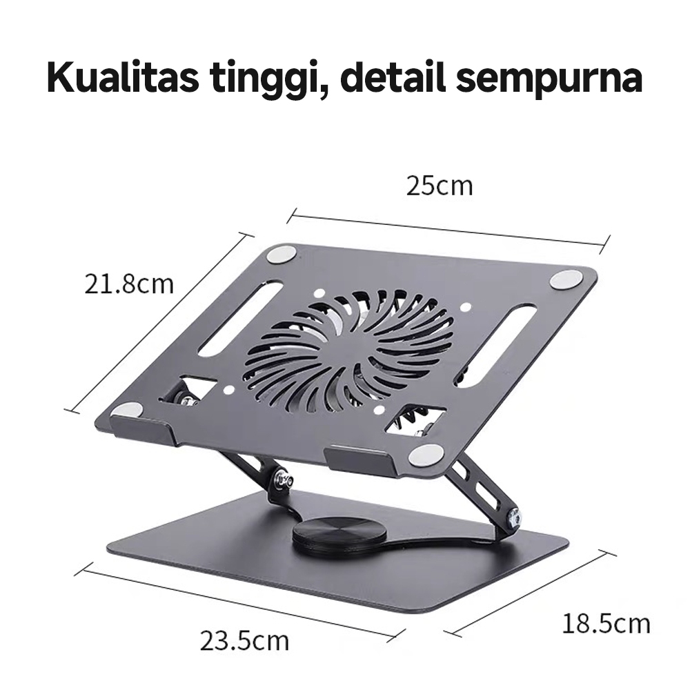 Stand Laptop Rotasi 360° Paduan Aluminium Kipas Laptop Cooling Pad / Pendingin Portabel dudukan Laptop Stand Holder