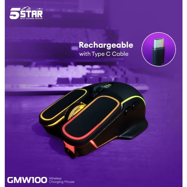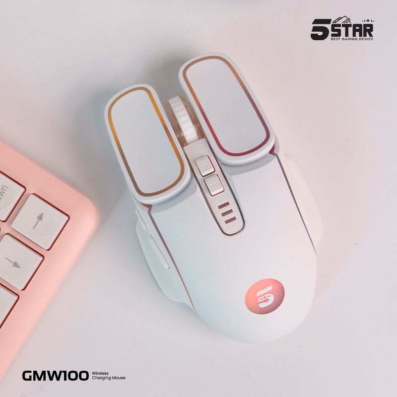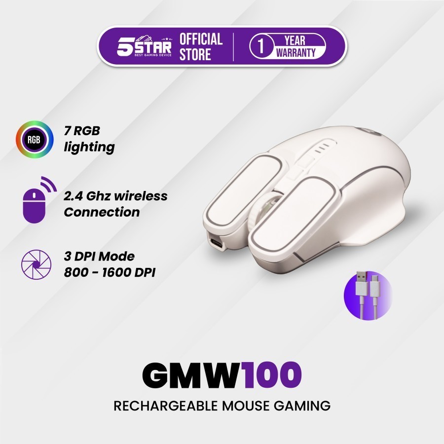 Mouse Wireless Gaming Rechargeable Baterai Type-C Fast Charging 1600DPI RGB Light GMW100 White