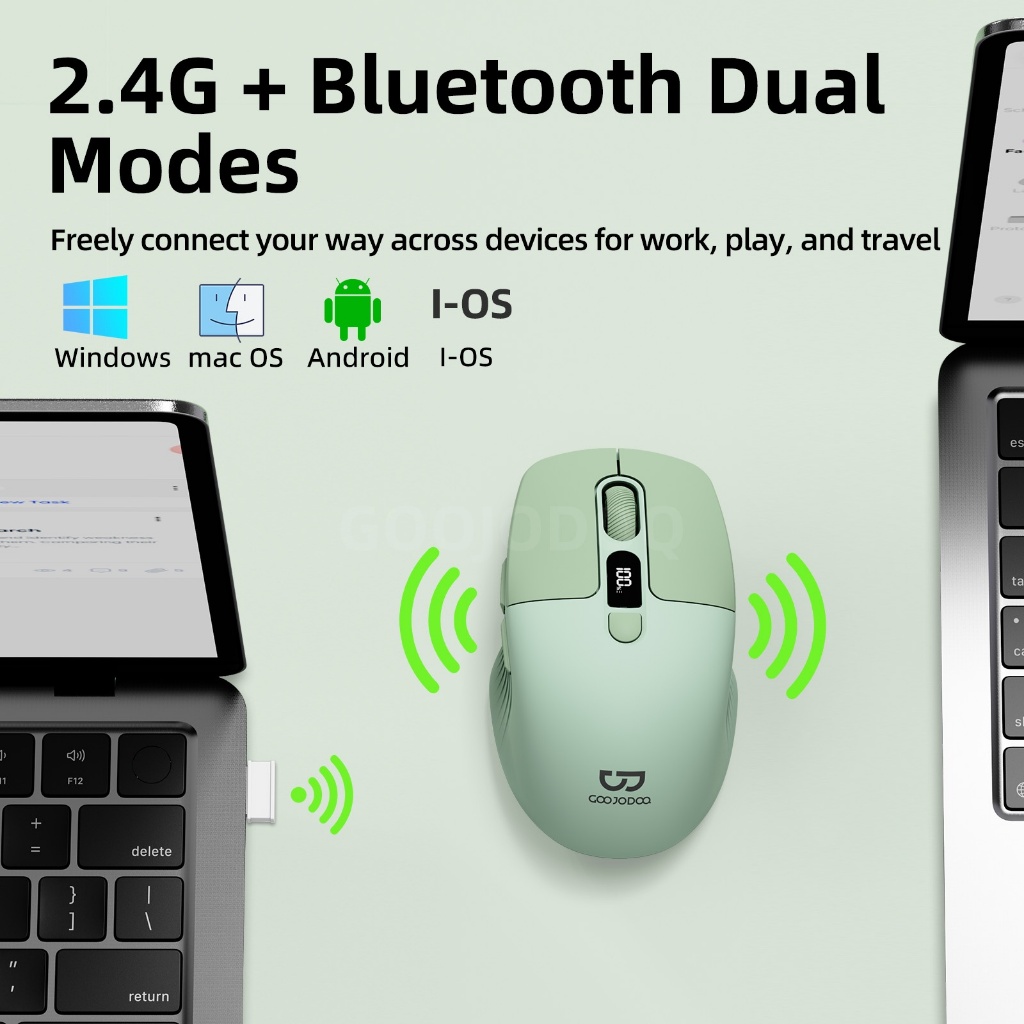 GOOJODOQ Wireless Mouse 4000DPI 2.4GHz Mouse Ergonomic Scrolling Battery Display Bluetooth Mouse