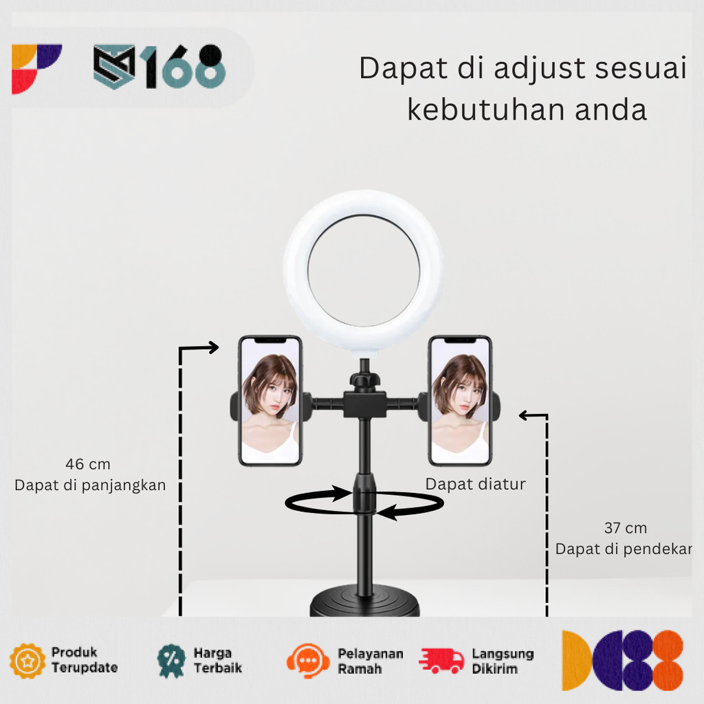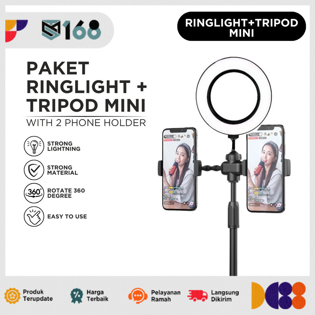 Ring Light 16cm + Tripod + 2 Holder Mini Stand HP Stream Selfie Make Up Vlog