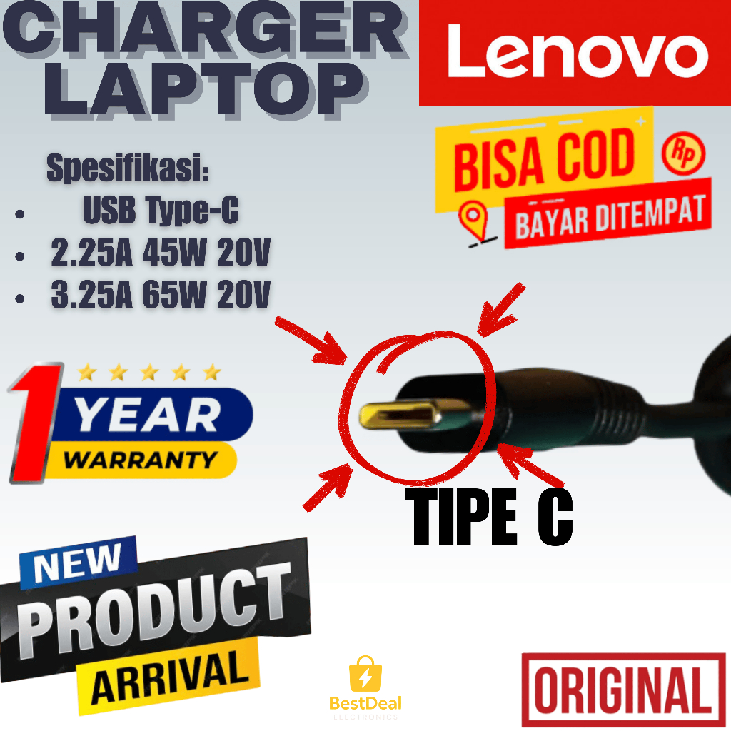 HARGA MULAI 20RIBUAN + GARANSI 1 TAHUN Adaptor Charger Laptop Thinkpad Ideapad Type C ORIGINAL