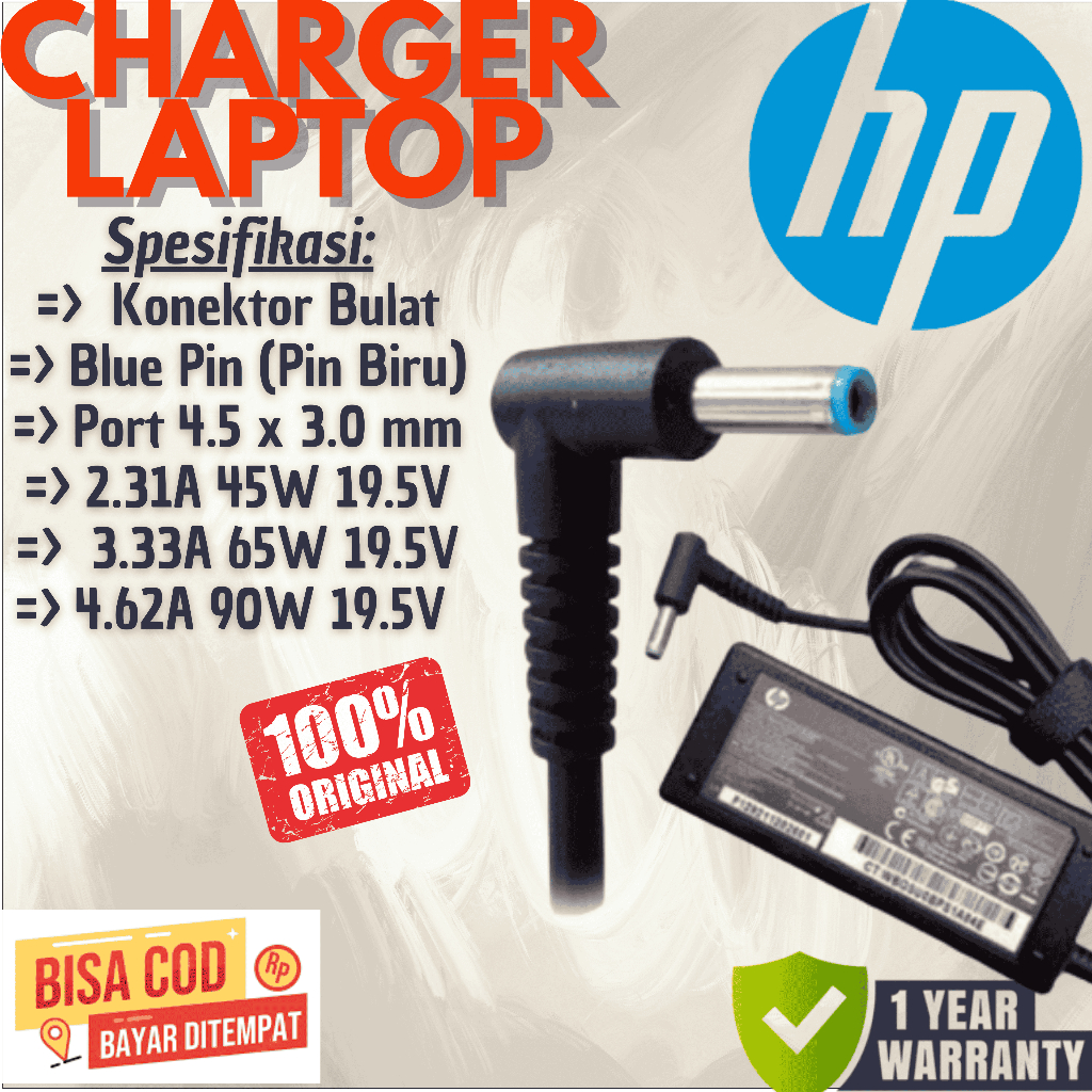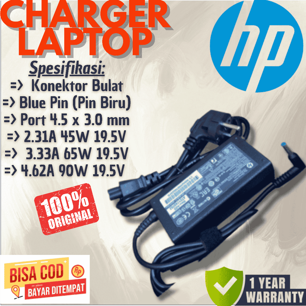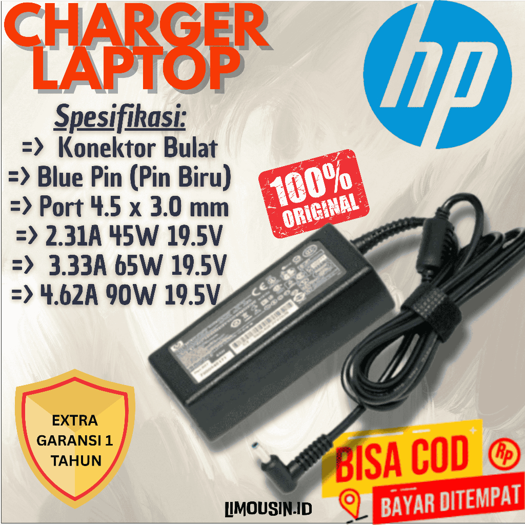 [ORIGINAL JAMIN GARANSI 1 TAHUN] Kabel + Adaptor Charger Laptop HP Blue Pin 4.5x3.0mm