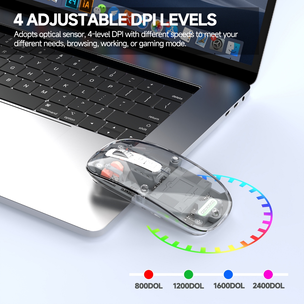 Goojodoq Bluetooth Mouse Wireless DPI for iPad laptop Rechargeable Silent Tablet Phone Android Desktop Gray