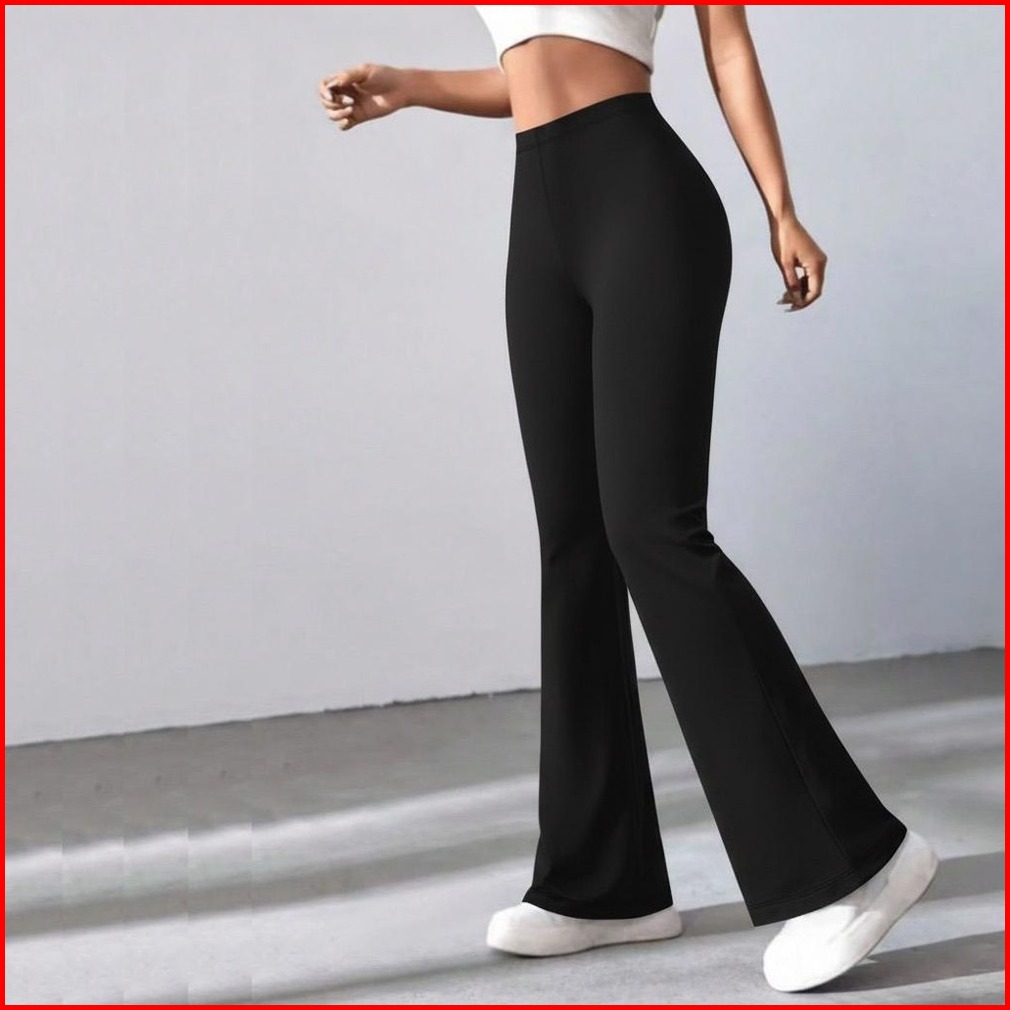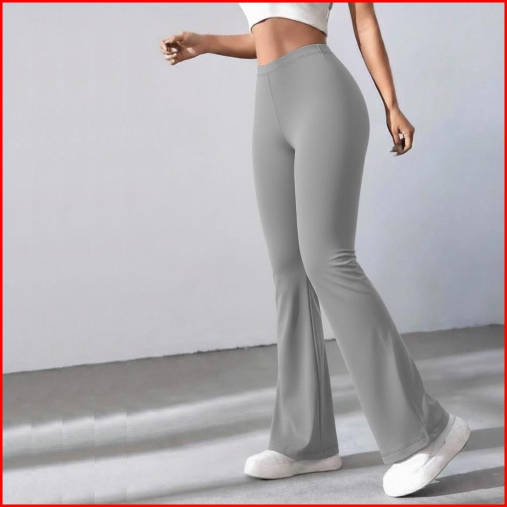 Ptm - Premium Celana Panjang Cutbray Pinggang Highwaist Flare Pants Bahan Stretch Jumbo Kantor Olahraga Gym Pilates Runn