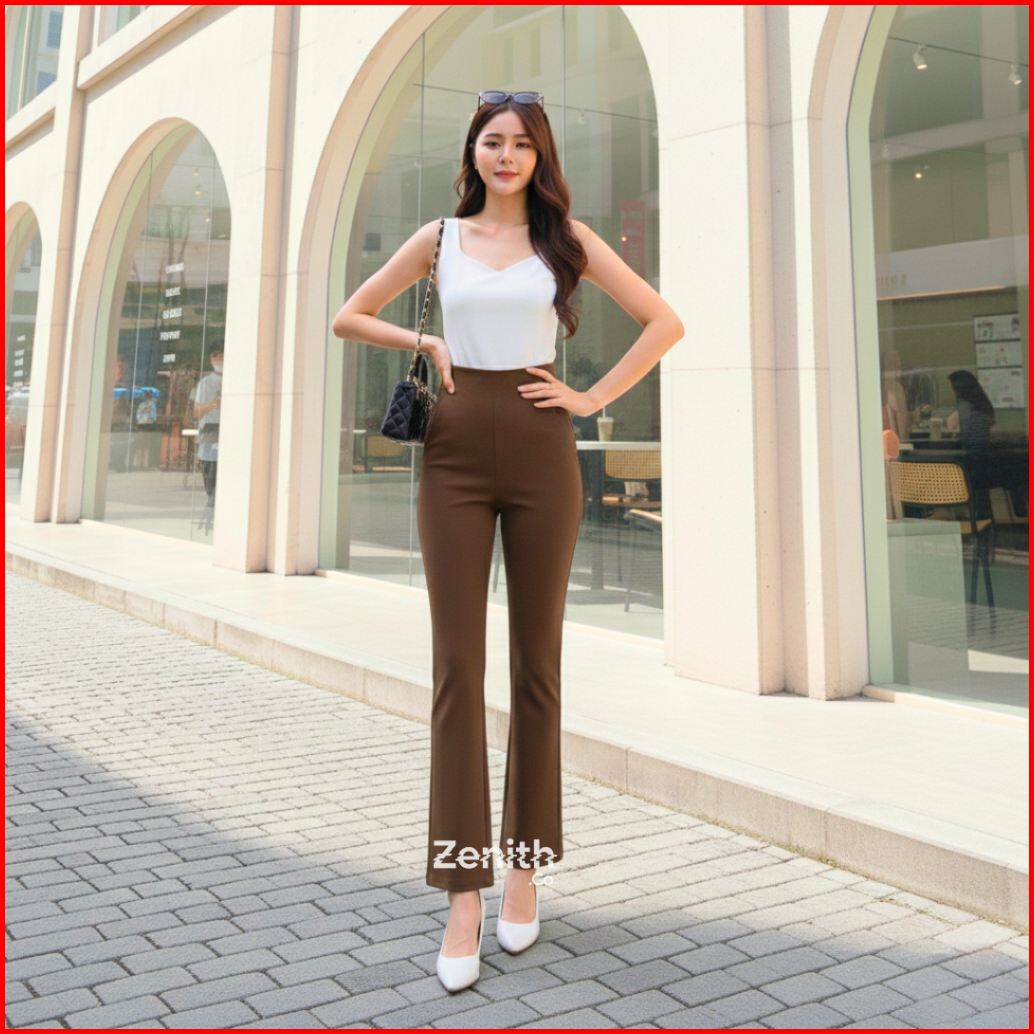 Zenith - Celana Flare Pants Highwaist Wanita Cutbray Scuba Premium Tebal